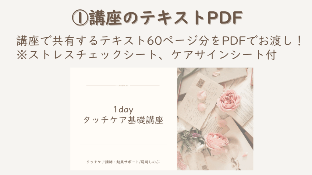 当日使用するテキスト(PDF)、特典は講座30分以内にメールで届きます。